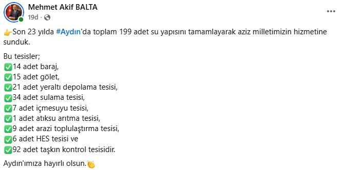 Devlet Su İşleri Genel Müdürü Mehmet Akif Balta, Aydın’da son 23 yılda tamamlanan 199 su yapısı ile bölgeye büyük katkı sağlandığını açıkladı. Barajlardan sulama tesislerine, HES’lerden taşkın kontrol yapılarından içmesuyu projelerine kadar geniş ... haberin devamı için tıklayın