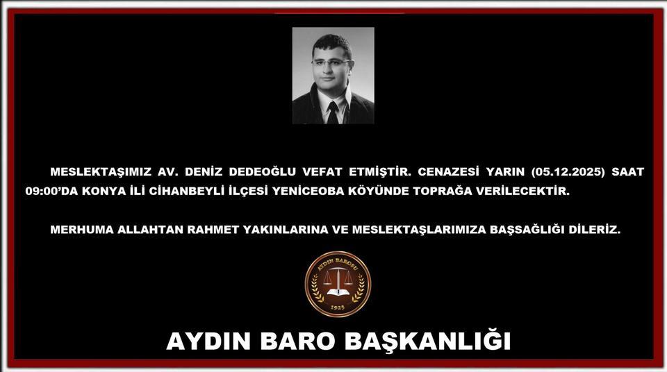 Aydın Barosu’na kayıtlı, Didim’de serbest avukatlık yapan Deniz Dedeoğlu tedavi gördüğü Konya’da yaşamını yitirdi. Meslektaşları ve yakınları büyük üzüntü yaşarken, cenaze programı Baro tarafından duyuruldu. Aydın Barosu’na bağlı olarak ... haberin devamı için tıklayın