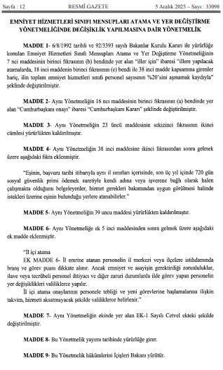 Resmi Gazete’de yayımlanan yeni düzenlemeyle Aydın ve ilçelerinde görev yapan Emniyet Hizmetleri Sınıfı personelinin zorunlu hizmet süreleri güncellendi. Birçok ilçede yıl aralıkları yeniden belirlenirken, polislerin il içi atanma koşullarında da önemli ... haberin devamı için tıklayın