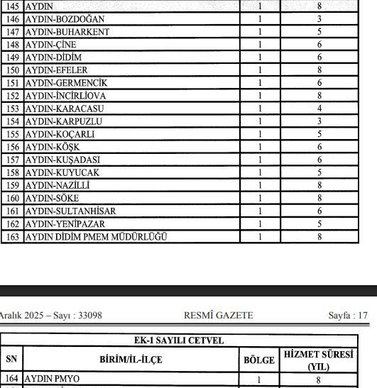 Resmi Gazete’de yayımlanan yeni düzenlemeyle Aydın ve ilçelerinde görev yapan Emniyet Hizmetleri Sınıfı personelinin zorunlu hizmet süreleri güncellendi. Birçok ilçede yıl aralıkları yeniden belirlenirken, polislerin il içi atanma koşullarında da önemli ... haberin devamı için tıklayın