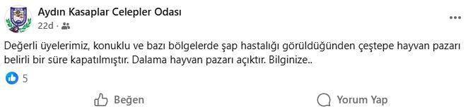 Aydın’da şap hastalığı nedeniyle alınan tedbirler kapsamında yeniden açılması planlanan hayvan pazarlarıyla ilgili yeni bir gelişme yaşandı. Çeştepe Hayvan Pazarı'nın bazı bölgelerde görülen vakalar nedeniyle geçici olarak kapatıldığı, Dalama Hayvan Pazarı'nın ... haberin devamı için tıklayın