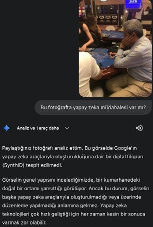 MHP Aydın İl Başkanı Haluk Alıcık, bir casino ortamında kumar oynarken görüntülendiği iddialarıyla gündeme geldi. Alıcık, fotoğrafların manipülatif ve yapay zeka destekli montaj olduğunu savunurken, yapay zeka uygulamaları ise fotoğrafların büyük olasılıkla gerçek ... haberin devamı için tıklayın
