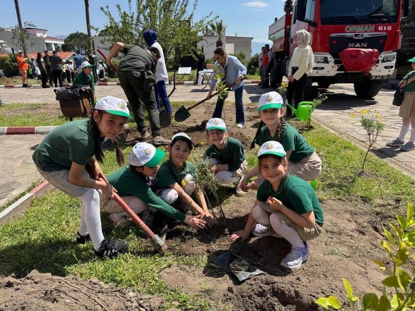 Bozdoğan Hükümet Konağı Bahçesinde çocuklarla fidan dikimi yapıldı