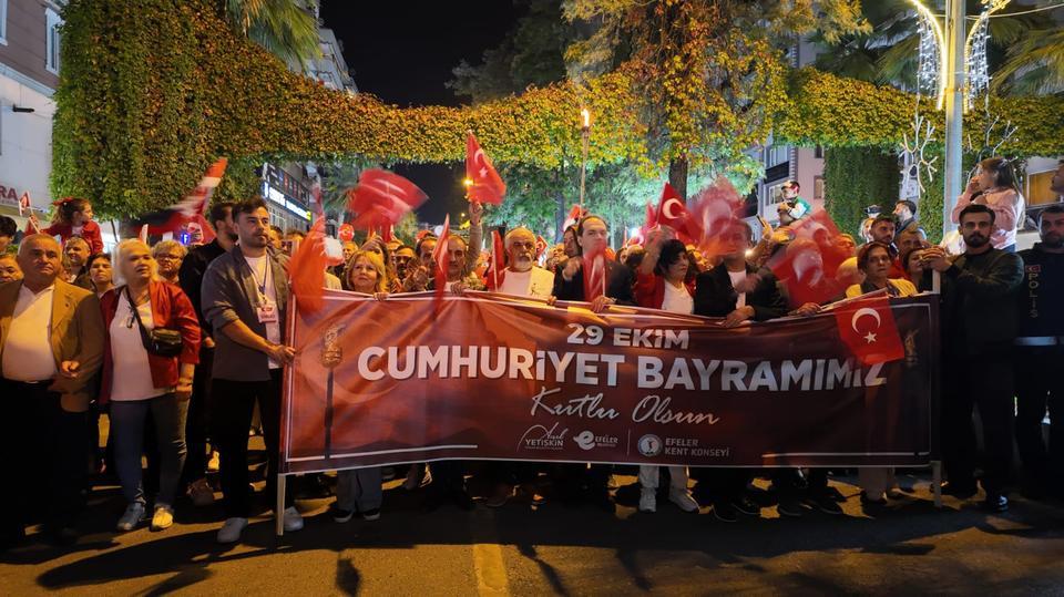 Efeler Belediyesi, Cumhuriyet’in 102. yılı dolayısıyla düzenlediği 29 Ekim Cumhuriyet Yürüyüşü ile kentte büyük bir coşku yaşattı. İstasyon Meydanı’nda başlayan yürüyüşe, ellerinde Türk bayraklarıyla katılan yüzlerce vatandaş marşlar ... haberin devamı için tıklayın