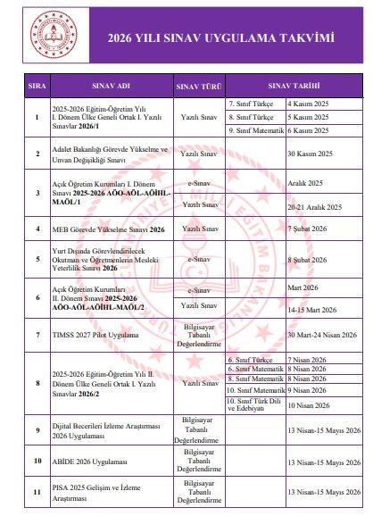 Milli Eğitim Bakanlığı tarafından 2026 yılı sınav uygulama takvimi yayımlandı. Milli Eğitim Bakanlığı 2026 yılının sınav uygulama takvimini yayımladı. Takvime göre; Sınavla Öğrenci Alacak Ortaöğretim Kurumlarına İlişkin Merkezi Sınav (LGS) 14 Haziran 2026 Pazar günü, İlköğretim ... haberin devamı için tıklayın