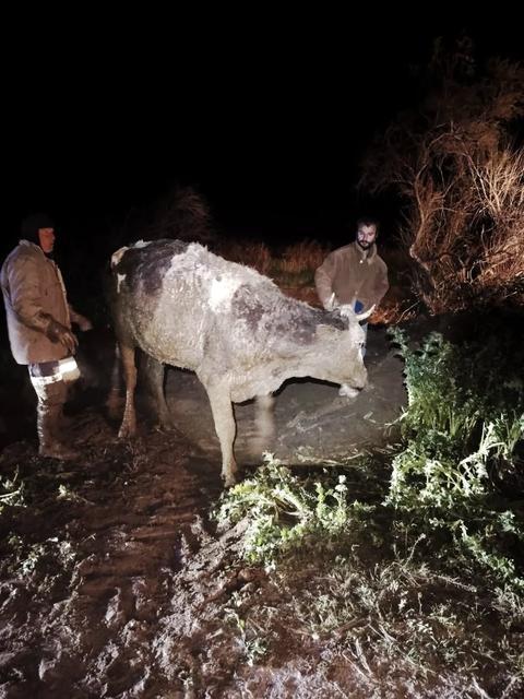 Aydın'da bataklığa saplanan büyükbaş hayvan kurtarıldı