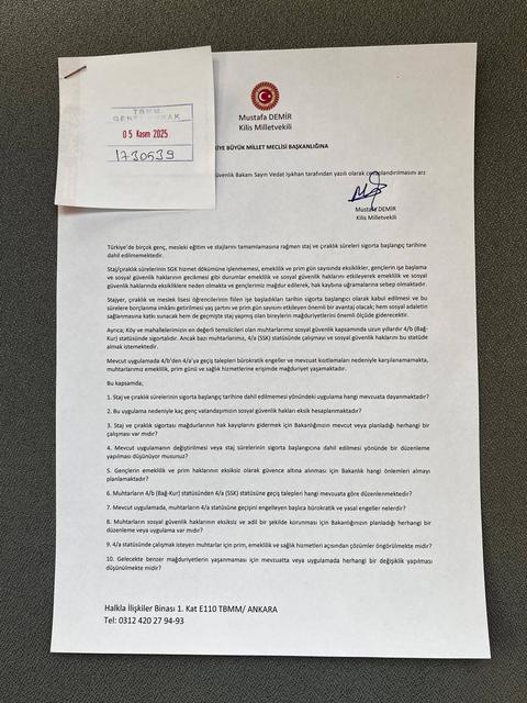 Milliyetçi Hareket Partisi (MHP) Kilis Milletvekili Mustafa Demir, Çalışma ve Sosyal Güvenlik Bakanı Vedat Işıkhan’ın yanıtlaması istemiyle Türkiye Büyük Millet Meclisi’ne (TBMM) bir soru önergesi sundu. Demir, önergesinde staj ve çıraklık ... haberin devamı için tıklayın