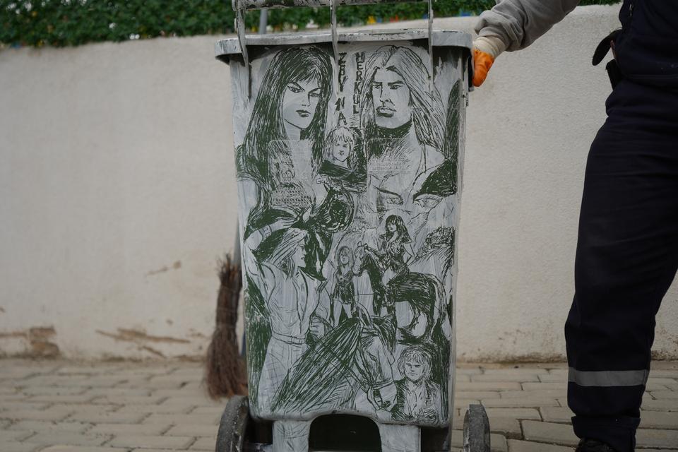 Kocaeli'de çobanlıktan belediyede temizlik işçiliğine uzanan hayatında sanatı yaşatan 60 yaşındaki Selami Gündoğdu, süpürgenin çalısını kalem gibi kullanarak konteynerlere Türk sinemasının unutulmaz isimleri ile çizgi roman karakterlerini resmediyor. ... haberin devamı için tıklayın