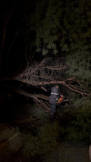 Koçarlı’da çam ağacı yola devrildi