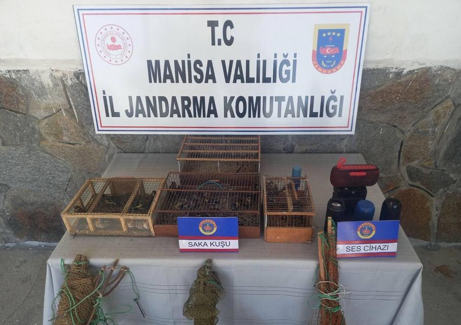 Manisa'nın Kırkağaç ilçesinde tuzak kurarak saka kuşu avlayan 4 kişi jandarma ekiplerince yakalandı. Şahıslara 229 bin 832 TL idari para cezası uygulandı.