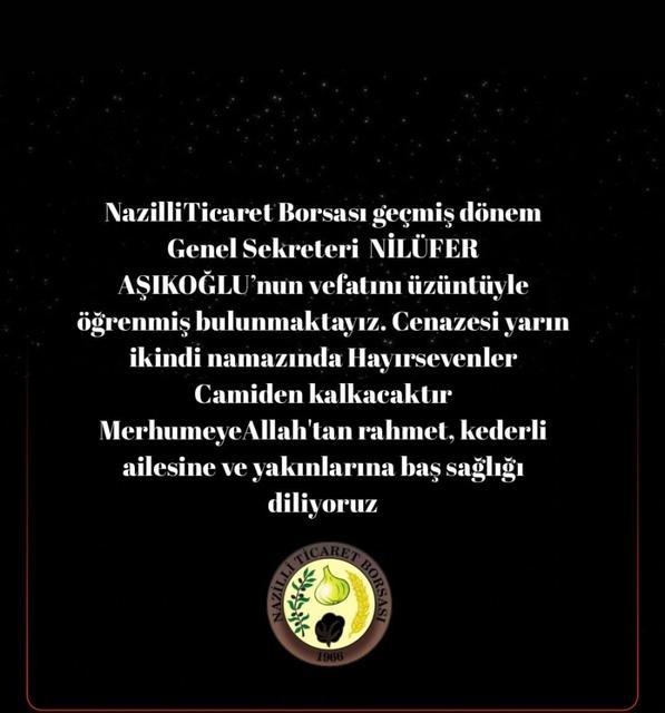 Aydın'ın Nazilli ilçesinde geçirdiği kaza sonrası tedavi gören Nilüfer Aşıkoğlu'ndan acı haber geldi. Geçtiğimiz ocak ayında annesi ile birlikte geçirdiği trafik kazasının ardından hastanede tedavi gören Eski Nazilli Ticaret Borsası Genel Sekreteri ... haberin devamı için tıklayın