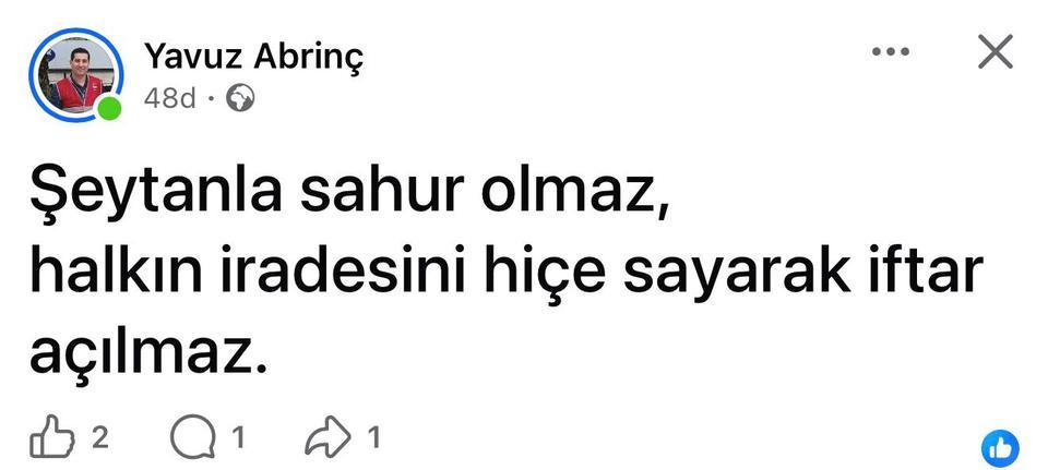 Söke Belediye Başkanı Mustafa İberya Arıkan’ın AK Parti Gençlik Kolları’na yaptığı ziyaret tartışma yaratırken, en sert çıkış eski danışmanı Yavuz Abrinç’ten geldi. Söke Belediye Başkanı Mustafa İberya Arıkan, Ramazan ayı kapsamında Söke’nin ... haberin devamı için tıklayın