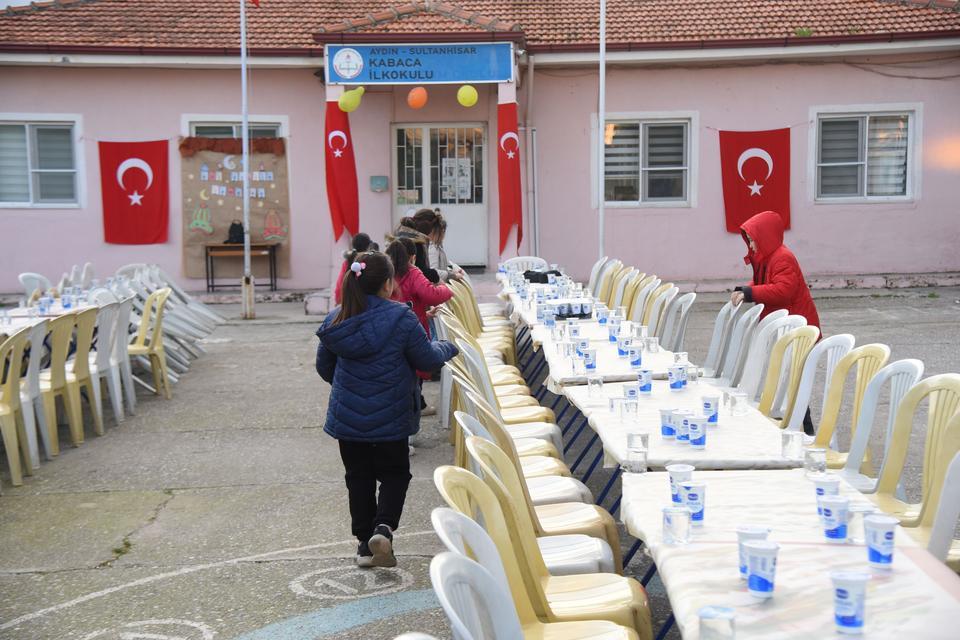 Aydın’da anasınıfı ile birlikte toplamda 3 sınıfı bulunan Sultanhisar Kabaca İlkokulu’nda eğitim gören 27 öğrenci, öğretmenlerinden öğrendikleri Ramazan ayı ve oruç tutmanın maneviyatını yaşamak için öğretmen ve velilerine iftar yemeği verdi. Kendi ... haberin devamı için tıklayın