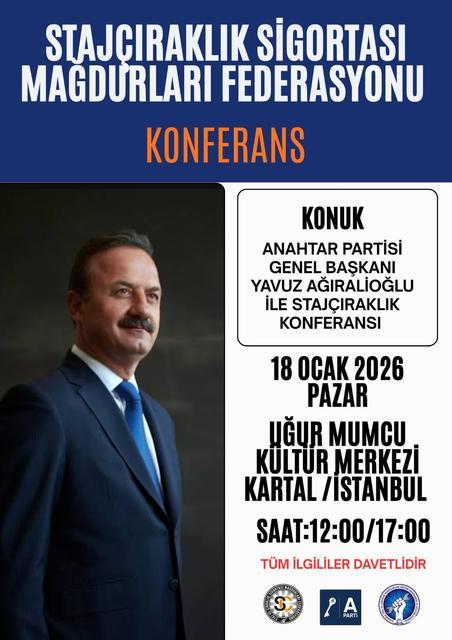 Staj ve çıraklık sigortası mağduriyetlerinin masaya yatırılacağı bir konferans düzenlenecek. Staj ve Çıraklık Sigortası Mağdurları Federasyonu ve Anahtar Parti iş birliğiyle düzenlenecek konferansta, mağduriytin sebepleri, mevcut mevzuat ve çözüm önerileri ... haberin devamı için tıklayın
