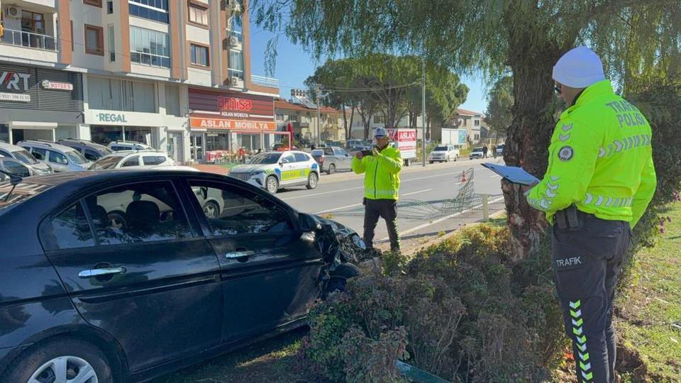 Otomobil refüjdeki ağaca çarptı: 2 yaralı