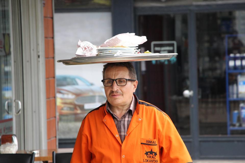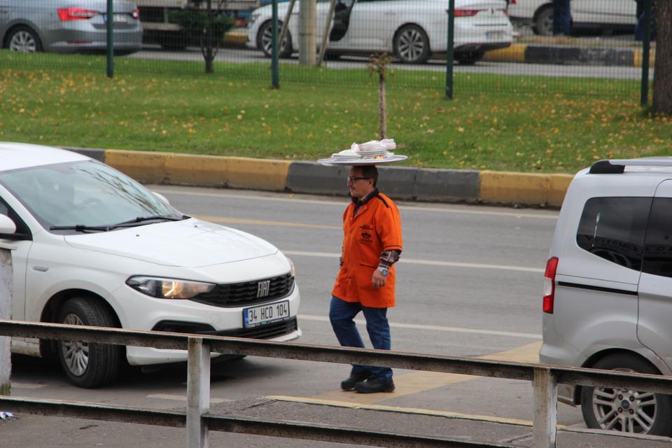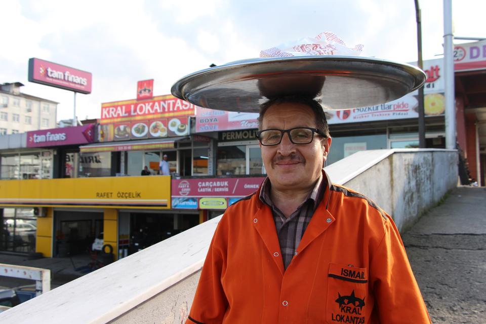 Müşterilerin çok dikkati çekiyor. 'Tepsiyi kafasında nasıl götürüyor' diye merak ediyorlar. Özellikle yabancı turistlerin yoğun ilgisini çekiyor. Tepsiyi kafanın üzerinde taşımak bir meziyet. İsmail arkadaşımız bunu başarıyor” diye konuştu.
