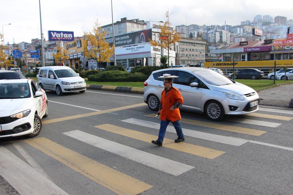 Kafasının üzerinde taşıdığı yemek tepsisi ile yoldan karşıdan karşıya geçerken bir kaç kez kaza da geçirdiğini dile getiren Yıldırım, “Görenler bu tepsiyi nasıl götürüyorsun, düşürmüyor musun diyorlar. Bende düşürse parası cebinde hazır diyorum.