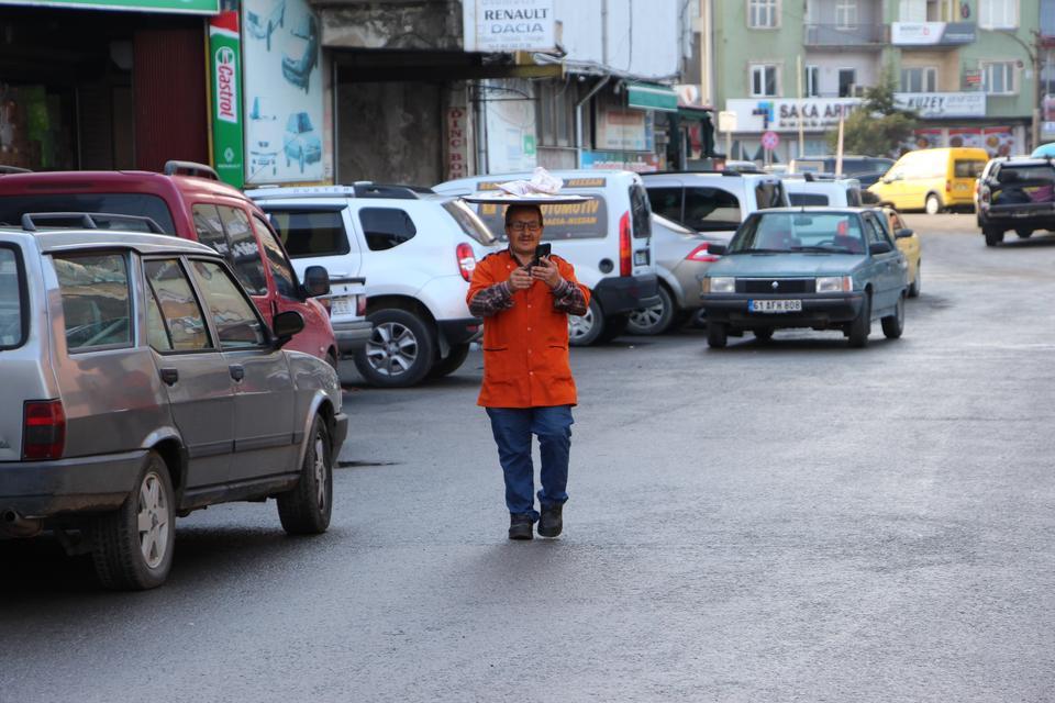 Çok kişi ‘dikkat düşüreceksin’ diyor. Yolun karşısına geçerken birkaç kez araba da çarptı bana. 10 senedir sadece bu işi yapıyorum. Bir işe acemice yaklaşırsan o işi yapamazsın. Ama oluruna bıraktığın zaman hiçbir şey olmaz. Günde yaklaşık 20 km kafamın üzerindeki tepsi ile yemek taşıyorum. Görenler cep telefonu ile beni çekiyor. Sosyal medyada çok videom var. Yemek siparişine göre tepsideki ağırlık değişiyor. Kimi zaman 2 tane kimi zaman 20 tane oluyor. Benim için fark etmiyor. Önemli olan onu kafamın üzerine koymam. Bazıları kafamın üstü düz mü diye bakıyorlar veya tepsinin altında bir şey mi var diye bakıyorlar. Bazıları tepsiyi kafamda taşıdığım için düzlendiğini söylüyor” şeklinde konuştu.